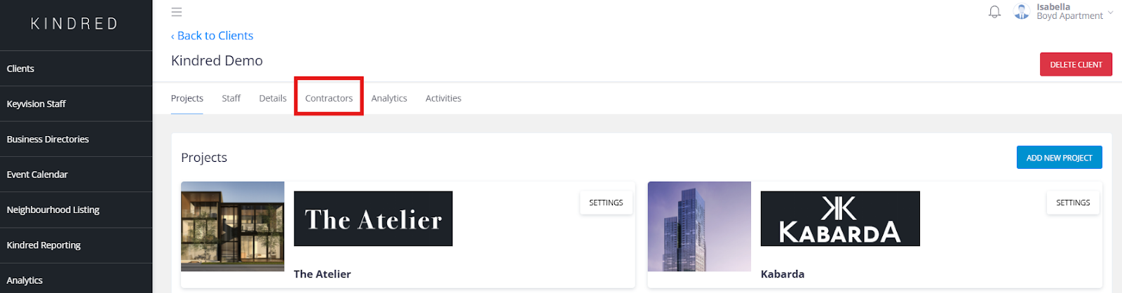 Note: If you don't have access to the Client portfolio, please request your manager or the Keyvision team to add the contractors.