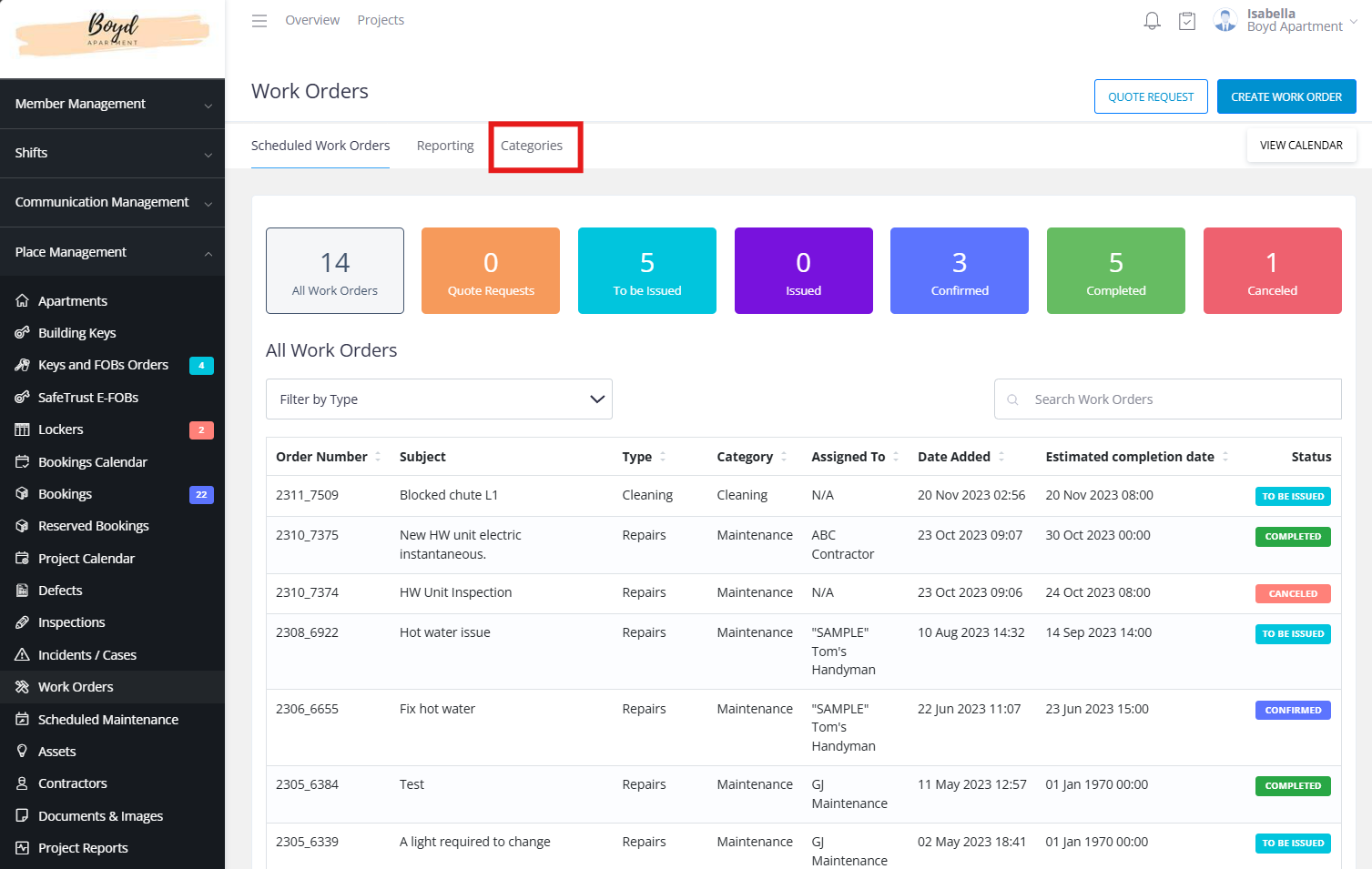 💡 Tip: Avoid editing or deleting categories once assigned to work orders.