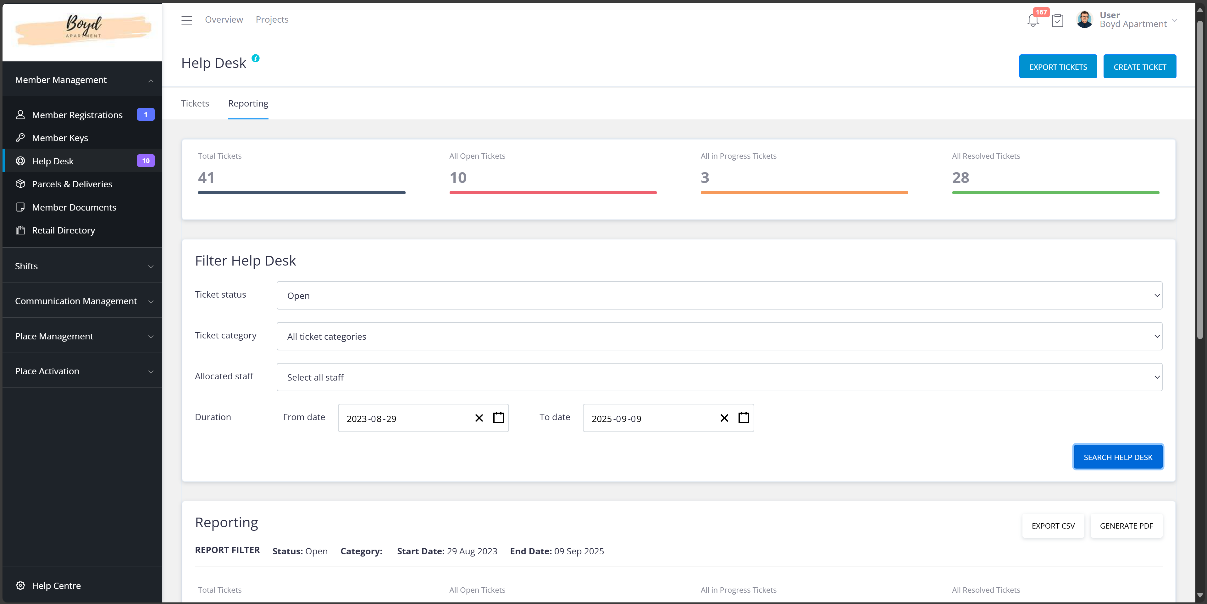 Help desk tickets is conveniently located under Member Management.